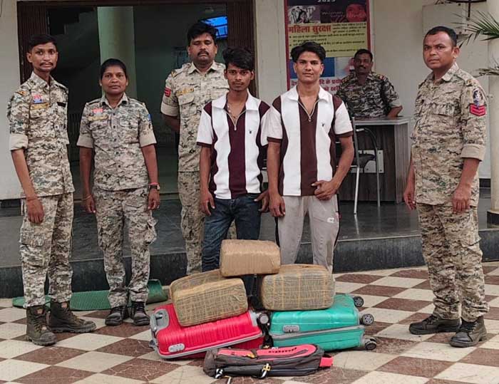 उक्त सूचना पर थाना तोंगपाल से थाना प्रभारी निरीक्षक सुरेन्द्र यादव के हमराह स्टाप जांच नाका के पास एनएच 30 रोड के किनारे दो व्यक्ति जिनके पास दो ट्राली बैग व एक लटकन बैग रखे थे जो पुलिस पार्टी को देखकर भागने लगे जिन्हे पुलिस पार्टी द्वारा घेराबंदी कर पकड़ा गया। पूछ-ताछ में अपना नाम मोनू कुमार पिता स्व. रमेशचंद उम्र 19 वर्ष एवं शिवम कुमार पिता बबलू उम्र 18 वर्ष दोनों निवासी रोहटा रोड डूंगर पूथखास थाना मेरठ उ.प्र. का रहने वाले बताये तथा उनके कब्जे में रखे बैगो की तलाशी लेने पर कुल 26 किलो मादक पदार्थ गांजा परिवहन करते हुये पाया गया।