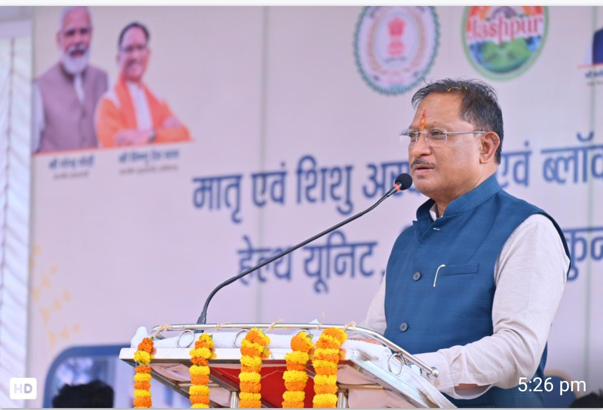 इस अवसर मुख्यमंत्री साय ने कहा कि आज जिले में स्वास्थ्य के क्षेत्र में विकास की एक और कड़ी जुड़ रही है। इस अस्पताल के निर्माण से इस क्षेत्र की माताओं बहनों और बच्चों को काफी लाभ होगा। कुनकुरी के साथ ही फरसा बहार, कांसाबेल और दुलदुला क्षेत्र के लोग इससे लाभान्वित होंगे। उन्होंने आगे कहा कि स्वास्थ्य सुविधाओं के विस्तार के लिए लगातार काम कर रहे हैं। जशपुर में 200 बेड अस्पताल का निर्माण होने जा रहा है। इसका टेंडर लग चुका है। इस बजट में यहां मेडिकल कॉलेज खोलने का प्रावधान किया गया है। यहां नर्सिंग और फिजियोथेरेपी कॉलेज खोले जाएंगे। आयुष्मान कार्ड और जेनरिक दवा दुकानों के माध्यम से किफायती इलाज उपलब्ध करा रहे हैं। वय वंदन योजना का लाभ सभी वर्ग के वृद्ध जनों को मिलेगा, यह स्वास्थ्य सुरक्षा के लिए एक महत्वपूर्ण योजना है। मितानिनों के मानदेय की राशि ऑनलाइन प्रदान करने की सुविधा की शुरुआत किए है। जिससे समय पर उनको भुगतान हो सके।