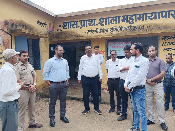 खबर वर्ल्ड न्यूज-संतोष पाठक-मुंगेली। कलेक्टर कुन्दन कुमार और पुलिस अधीक्षक भोजराम पटेल ने स्कूलों में शिक्षा व्यवस्था सहित अन्य आवश्यक व्यवस्थाओं का जायजा लेने प्राथमिक शाला महामायापारा लोरमी स्कूल का औचक निरीक्षण किया। उन्होंने स्कूल में विभिन्न क्लासरूम, पेयजल सहित मूलभूत सुविधाओं और विद्यालय में संचालित मध्यान्ह भोजन योजना की स्थिति का जायजा लिया और बच्चों को गुणवत्तापूर्ण एवं पोषणयुक्त मध्यान्ह भोजन उपलब्ध कराने के निर्देश संबंधित अधिकारियों को दिए।