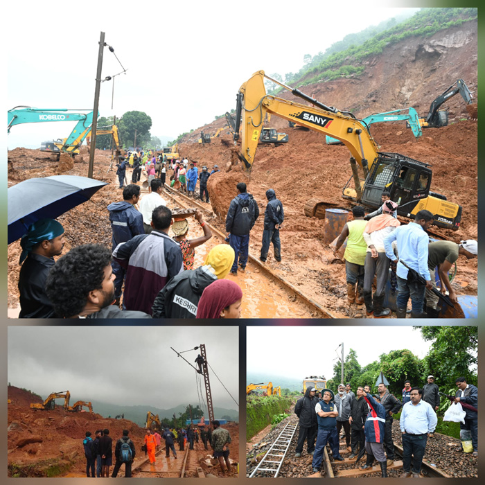 खबर वर्ल्ड न्यूज-राकेश पांडेय-जगदलपुर। किरंदुल-कोत्तवालसा रेललाइन पर मंगलवार को मल्लीगुड़ा-जड़ती स्टेशनों के बीच हुए भूस्खलन के बाद लगभग 48 घंटों बाद पटरियों पर गिरे मलबे व बोल्डरों को हटा दिया गया है। इसके साथ ही प्रभावित ट्रैक को 4 जुलाई की शाम तक फ़िट प्रमाणित कर दिया गया है। सुरक्षा उपाय के तौर पर, प्रभावित स्थल पर सीमित गति से ट्रेन संचालन की अनुमति दी गई है । वहीं अब पटरियों को दुरूस्त करने के साथ ही ओवरहेड इक्विपमेंट (ओएचई) एवं सिग्नल सिस्टम का काम जारी है। रेलवे की तकनीकी टीम के अनुसार भूस्खलन से रेललाइन पर लगभग 30 हजार घनमीटर मलबा गिरे मलबा व बोल्डर साफ करने के बाद सिग्नल सिस्टम का काम युद्ध स्तर पर जारी हैं। अनुमान लगाया जा रहा है कि रविवार से बाधित रेल यातायात पूरी तरह से पटरी पर आ जाएगा।