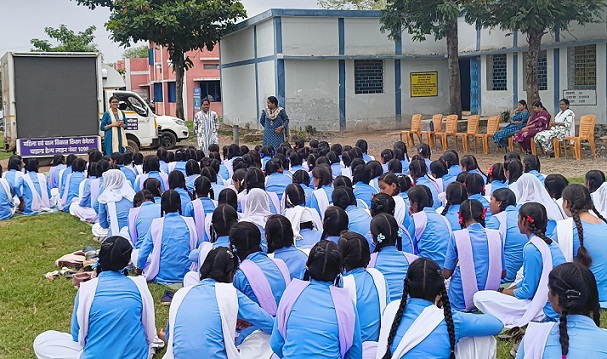 कार्यक्रम में विद्यालय की समस्त छात्राएं व शिक्षकों ने उत्साहपूर्वक भाग लिया। बालिकाओं को बताया गया कि समय पर लिया गया सही निर्णय जीवन में सफलता की कुंजी होता है, अतः उन्हें अभी से लक्ष्य निर्धारित कर, उचित मार्गदर्शन के साथ अपने भविष्य को सशक्त बनाना चाहिए। इस अवसर पर एलईडी डिस्प्ले के माध्यम से चाइल्ड हेल्पलाइन 1098, साइबर क्राइम, मासिक धर्म स्वच्छता एवं लैंगिक उत्पीड़न जैसे महत्वपूर्ण विषयों पर वीडियो के माध्यम से छात्राओं को जागरूक किया गया। इसके अतिरिक्त किशोरी बालिकाओं को सेनेटरी पैड एवं ष्संगिनी दीदी के गोठष् पुस्तक वितरित की गई, जिसमें माहवारी स्वच्छता एवं आत्म-संरक्षण से संबंधित जानकारी दी गई है। कार्यक्रम में श्मिशन शक्तिश् के अंतर्गत यह भी बताया गया कि कैसे किशोरियों को प्रशिक्षण, मार्गदर्शन और सहायता देकर उन्हें आत्मनिर्भर बनने के लिए तैयार किया जा रहा है। इस आयोजन में महिला एवं बाल विकास विभाग की संयुक्त टीम तथा विद्यालय के समस्त शिक्षकगण उपस्थित रहे। कार्यक्रम ने बेटियों को न केवल आत्मविश्वास से भरने का कार्य किया, बल्कि उन्हें जीवन की दिशा तय करने हेतु प्रेरित भी किया।