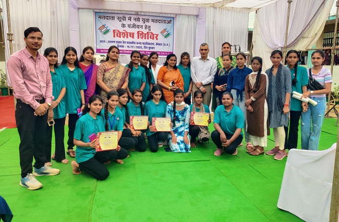खबर वर्ल्ड न्यूज-आशीष कंठले-बेमेतरा। कलेक्टर एवं जिला निर्वाचन अधिकारी रणबीर शर्मा के मार्गदर्शन मे आज जिले के लक्ष्मण प्रसाद वैद्य कन्या महाविद्यालय में मतदाता जागरूकता को बढ़ावा देने के उद्देश्य से विशेष शिविर का आयोजन किया गया। इस शिविर के माध्यम से 18 से 19 वर्ष की आयु वर्ग के पात्र छात्र-छात्राओं को मतदाता सूची में नाम जुड़वाने की प्रक्रिया से अवगत कराया गया।