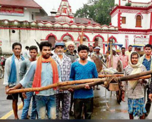 ग्राम बिलोरी के जंगल से रथ निर्माण की पहली लकड़ी लाई गई मां दंतेश्वरी मंदिर के सामने