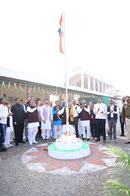 साहू ने अपने संबोधन में कहा कि गणतंत्र दिवस हम सभी नागरिकों के लिए गर्व और जिम्मेदारी का दिन है। यह दिन हमें भारतीय संविधान के मूल्यों, न्याय, स्वतंत्रता, समानता और बंधुत्व की याद दिलाता है। उन्होंने सभी से राष्ट्र निर्माण में सक्रिय भागीदारी निभाने और लोकतांत्रिक परंपराओं को मजबूत करने का आह्वान किया। कार्यक्रम में विशिष्ट अतिथियों के रूप में जिला पंचायत अध्यक्ष ईश्वरी साहू, रामकुमार भट्ट, नितेश अग्रवाल, लोकचंद साहू, विजय पटेल, सतविंदर पाहुजा, वीरेंद्र साहू, मनिराम साहू, तथा सुषमा गणपत बघेल सहित अन्य जनप्रतिनिधि उपस्थित रहे। इस अवसर पर विधायक कार्यालय के स्टाफ एवं स्थानीय नागरिकों की भी सहभागिता रही। सभी ने मिलकर देशभक्ति के नारों के साथ वातावरण को राष्ट्रप्रेम से ओतप्रोत कर दिया।