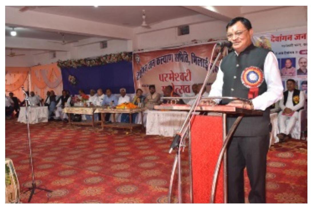 प्रदेश के अन्य पिछड़ा वर्ग विकास प्राधिकरण के उपाध्यक्ष एवं दुर्ग ग्रामीण विधायक विशिष्ट अतिथि के रूप में शामिल हुए। उन्होंने देवांगन समाज को सुलझा हुआ और जागरूक समाज बताते हुए कहा कि यह समाज लंबे समय से व्यापार, कृषि और वस्त्र निर्माण के क्षेत्र में महत्वपूर्ण योगदान देता आया है। उन्होंने कहा कि जांजगीर-चांपा क्षेत्र में कोसा व्यापार में भी देवांगन समाज की अहम भूमिका रही है। उन्होंने कहा कि कोई भी समाज तभी आगे बढ़ता है जब वह संगठित और मजबूत होकर चलता है, और इसके लिए शिक्षा अत्यंत आवश्यक है। उन्होंने चिंता व्यक्त करते हुए कहा कि आर्थिक स्थिति कमजोर होने के कारण कई बार बेटा-बेटी आगे नहीं बढ़ पाते। समाज को ऐसी व्यवस्था बनानी चाहिए जिससे आर्थिक स्थिति मजबूत हो और बच्चों को आगे बढ़ने का अवसर मिले। उन्होंने कहा कि समाज को नौकरी मांगने वाला नहीं, बल्कि नौकरी देने वाला समाज बनना चाहिए।