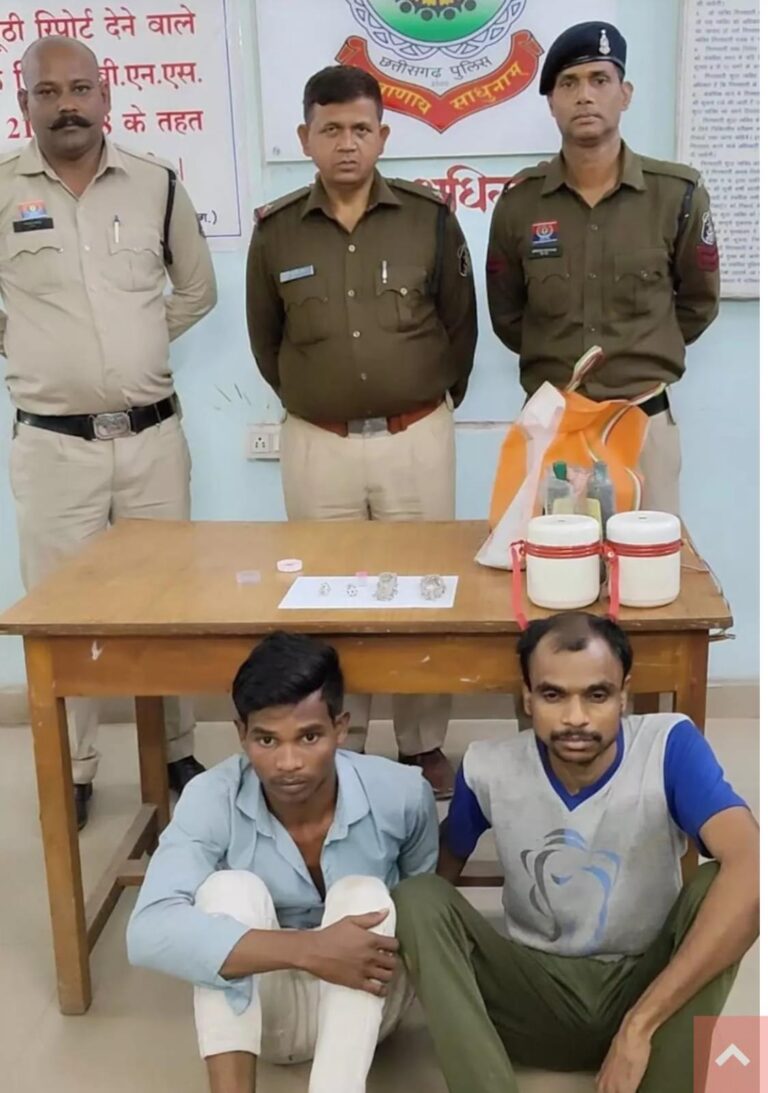 KWNS – रायगढ़ l छत्तीसगढ़ के रायगढ़ जिले में घरघोड़ा पुलिस ने ग्राम नावापारा टेण्डा में हुई चोरी की वारदात का 24 घंटे के भीतर खुलासा करते हुए बड़ी सफलता हासिल की है। वरिष्ठ पुलिस अधीक्षक शशि मोहन सिंह के निर्देशन में की गई त्वरित कार्रवाई में दो आरोपियों और एक विधि से संघर्षरत बालक को गिरफ्तार कर चोरी गई संपत्ति की शत-प्रतिशत बरामदगी की गई है। चोरी का सामान खरीदने वाले ज्वेलर्स को भी गिरफ्तार कर न्यायिक रिमांड पर भेजा गया है।