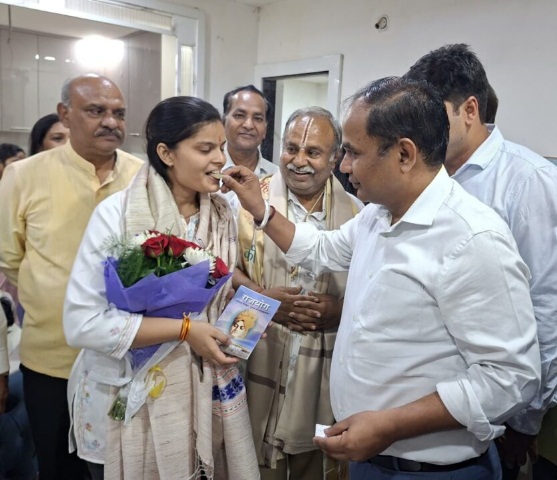 खबर वर्ल्ड न्यूज-रायपुर। यूपीएससी 2025 में 35वां स्थान हासिल कर रायपुर जिले का नाम रोशन करने वाली वैभवी अग्रवाल के निवास पहुंचकर कलेक्टर डॉ. गौरव सिंह ने मिठाई खिलाकर, पुष्पगुच्छ तथा प्रेरक पुस्तक भेंट कर बधाई दी और उज्ज्वल भविष्य की कामना की।