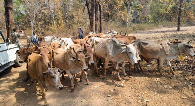 खबर वर्ल्ड न्यूज-संतोष कुमार-बीजापुर। जिले के थाना भोपालपटनम् क्षेत्रान्तर्गत मुखबीर की सूचना पर कि मवेशी तस्करों के द्वारा उल्लूर घाटी- चिल्लामरका के जंगल रास्ते से होते हुए मवेशियाें को हांककर तेलंगाना राज्य की ओर ले जाया जा रहा है। मुखबीर से मिली सूचना के आधार पर थाना बल द्वारा मवेशियाें को हांककर ले जाते हुए 9 मवेशी तस्करों 1. थिपनपल्ली संजीव पिता थिपनपल्ली नरसैया निवासी तेलंगाना, 2. हटकर राजू पिता हटकर तुलसी राम उ निवासी तेलंगाना, 3. कटकुरी मजनू पिता कटकुरी रवि निवासी तेलंगाना, 4. विनोद नारायण झाडे पिता राजीग्य झाड़े निवासी महाराष्ट्र, 5.व्येक्टी गोडया दुर्गे पिता गोडया निवासी महाराष्ट्र, 6. व्येकंटी राजीग्या दुर्गे पिता राजीग्य निवासी महाराष्ट्र, 7. प्रवीण शंकर दुर्गे पिता शंकर निवासी महाराष्ट्र, 8. अक्षय अजमेरा पिता राउजी अजमेरा उम्र 24 वर्ष जाति बंजारा निसासी येचली पोस्ट मन्नेराजाराम येचली एस मानणे राजाराम गढ़चिरोली मानणे महाराष्ट्र, 9. अशोक गुगलेम पिता स्व. कन्हैया गुगलेम निवासी सकनापल्ली थाना मोदकपाल जिला बीजापुर के पास से पशु स्वामित्व एवं परिवहन संबंधी कोई वैध दस्तावेज नहीं पाए गए। मौके पर गवाहों की उपस्थिति में 171 नग गौवंश कृषक पशु (गाय, बैल, बछड़े) बरामद किए गए।