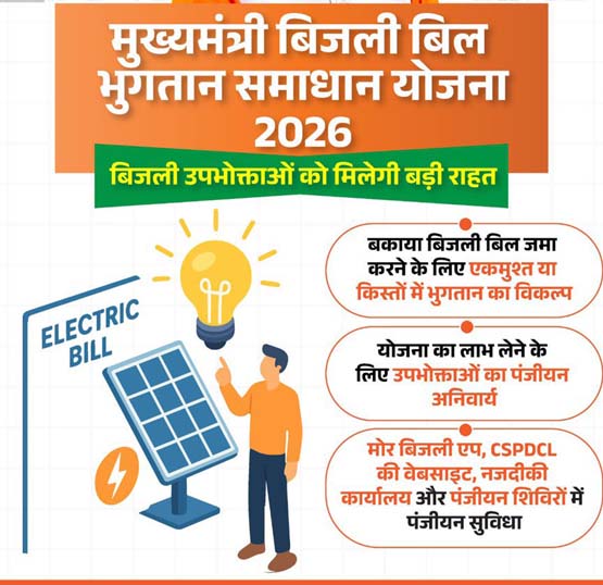 खबर वर्ल्ड न्यूज-राकेश पांडेय-जगदलपुर। राज्य शासन ने प्रदेश के लाखों बिजली उपभोक्ताओं को राहत देते हुए मुख्यमंत्री बिजली बिल भुगतान समाधान योजना 2026 का औपचारिक शुभारंभ कर दिया है। इस जन-कल्याणकारी योजना का आगाज मुख्यमंत्री विष्णुदेव साय द्वारा किया गया । इस योजना का मुख्य ध्येय निम्नदाब श्रेणी के घरेलू, बीपीएल और कृषि उपभोक्ताओं को उनके लंबे समय से लंबित बिजली बिलों के बोझ से मुक्त कर आर्थिक संबल प्रदान करना है। इस योजना का सबसे व्यापक प्रभाव बस्तर संभाग में देखने को मिलेगा, जहां के हजारों परिवारों को दशकों पुराने बकाया बिलों से मुक्ति मिलने वाली है।