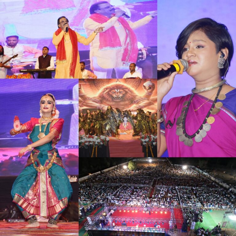 कार्यक्रम का मुख्य आकर्षण रहे छत्तीसगढ़ के सुप्रसिद्ध जगराता एवं लोकगायक दिलीप षडंगी, जिन्होंने अपनी दमदार आवाज और भावपूर्ण प्रस्तुति से दर्शकों को मंत्रमुग्ध कर दिया। “जांजगीर के चंदवा बैगा…”, “हर हर हर भोला गुरु महादेव…” “आमा पान के पतरी अऊ करेला पान के दोना…” और “लाली लाली चुनरी ओढ़े दाई मोर…” जैसे भक्ति गीतों से उन्होंने पूरे माहौल को श्रद्धा से भर दिया। वहीं “बोरे बासी संग म खवाहु…”, “छुनूर छुनूर पैरी बाजे रे गोरी…” जैसे छत्तीसगढ़ी गीतों ने दर्शकों को झूमने पर मजबूर कर दिया। उनकी प्रस्तुति में भक्ति, लोक और परंपरा का अद्भुत संगम देखने को मिला। उनकी शानदार प्रस्तुति ने ऐसा समां बांधा कि दर्शक देर रात तक झूमते नजर आए।