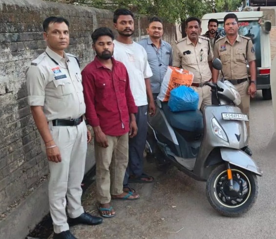 खबर वर्ल्ड न्यूज-रायपुर। राजधानी के नार्थ जोन अंतर्गत थाना खमतराई पुलिस ने 22 मार्च 2026 को अवैध मादक पदार्थ गांजा के परिवहन के मामले में बड़ी कार्रवाई की। वरिष्ठ पुलिस अधिकारियों के निर्देशन में कार्रवाई करते हुए दो आरोपियों, शिव कुमार ढीमर (27) और शुभम घोष (29) को मोपेड टीव्हीएस जुपिटर (CG04 PV 1604) के साथ गिरफ्तार किया गया। पुलिस ने बताया कि आरोपियों को अरोरा धर्मकांटा, भनपुरी के पास घेराबंदी कर पकड़ा गया। उनके कब्जे से कुल 4 किलो 496 ग्राम गांजा बरामद किया गया, जिसे मूल्यवान सामग्री की कीमत लगभग 2,50,000 रुपये आंकी गई। इसके अलावा, गांजा परिवहन में उपयोग किए गए मोपेड को भी पुलिस ने जब्त कर लिया, जिसकी कीमत लगभग 70,000 रुपये है।