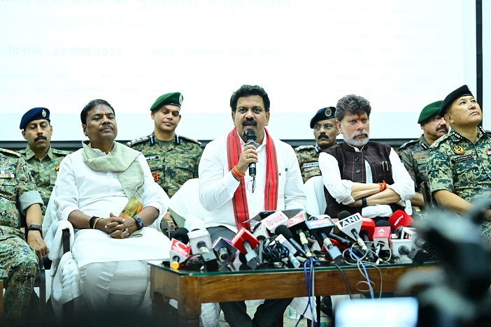 खबर वर्ल्ड न्यूज-राकेश पांडेय-जगदलपुर। जगदलपुर में आयोजित प्रेस वार्ता के दौरान उपमुख्यमंत्री एवं गृह मंत्री विजय शर्मा ने दृढ़ विश्वास के साथ कहा कि राज्य सरकार, केंद्रीय एजेंसियों और सुरक्षा बलों के समन्वित एवं सतत प्रयासों के परिणामस्वरूप छत्तीसगढ़ 31 मार्च 2026 तक सशस्त्र नक्सलवाद से पूर्णतः मुक्त हो जाएगा। उन्होंने कहा कि यह केवल एक प्रशासनिक उपलब्धि नहीं, बल्कि बस्तर और समूचे छत्तीसगढ़ के सामाजिक, आर्थिक और मानवीय पुनर्जागरण की दिशा में एक ऐतिहासिक परिवर्तन है। इस महत्वपूर्ण अवसर पर नारायणपुर विधायक एवं मंत्री केदार कश्यप, जगदलपुर विधायक किरण सिंहदेव, डीजीपी अरुण देव गौतम, पुलिस महानिदेशक एंटी नक्सल ऑपरेशन विवेकानंद, नक्सल उन्मूलन से जुड़े वरिष्ठ अधिकारी, एडीजी सीआरपीएफ, बस्तर कमिश्नर, आईजी सुंदरराज पी., बीजापुर के पुलिस अधीक्षक सहित विभिन्न केंद्रीय एवं राज्य सुरक्षा बलों के अधिकारी उपस्थित रहे।