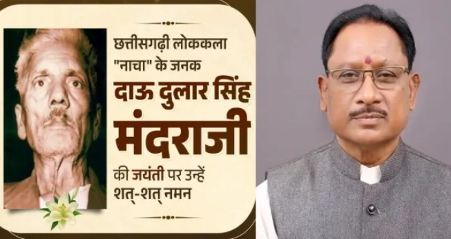 खबर वर्ल्ड न्यूज-रायपुर। मुख्यमंत्री विष्णुदेव साय ने छत्तीसगढ़ की समृद्ध लोककला परंपरा के संवाहक और ‘नाचा’ के जनक माने जाने वाले स्वर्गीय दाऊ दुलार सिंह मंदराजी की जयंती पर उन्हें श्रद्धापूर्वक नमन किया है।