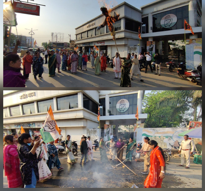 खबर वर्ल्ड न्यूज-राकेश पांडेय-जगदलपुर। बस्तर जिला महिला कांग्रेस शहर-ग्रामीण के संयुक्त तत्वाधान में महिला कांग्रेस शहर अध्यक्ष लता निषाद व ग्रामीण अध्यक्ष चंपा ठाकुर के नेतृत्व में बस्तर जिला महिला कांग्रेस शहर-ग्रामीण की पदाधिकारी व कार्यकर्ताओं के द्वारा आज रविवार काे बीते दिन दुर्ग में हुए 5 साल की बच्ची के साथ दरिंदगी, प्रदेश में महिलाओं के साथ बढ़ते अपराध, लचर कानून व्यवस्था एवं आंगनबाड़ी महिलाओं की साड़ियों में हुए भारी भ्रष्टाचार के विरोध में भाजपा सरकार के खिलाफ महिला बाल विकास मंत्री लक्ष्मी राजवाड़े व गृहमंत्री विजय शर्मा का पुतला दहन किया । इस दौरान वरिष्ठ कांग्रेसजन सहित बस्तर जिला महिला कांग्रेस शहर ग्रामीण के समस्त पदाधिकारी व कार्यकर्तागण मौजूद रहे।