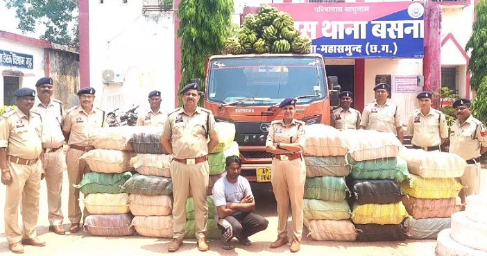 वाहन चालक से पूछताछ और सघन तलाशी लेने पर वाहन के अंदर लदे केला के बीच, 29 बोरियो में छुपाकर अवैध मादक पदार्थ (गांजा) का परिवहन करते हुए पाया गया। पुलिस टीम द्वारा विधिसम्मत कार्रवाई करते हुए मौके से कुल 29 अलग-अलग बोरियों में भरा 912.760 किलोग्राम गांजा (बोरी सहित) बरामद किया गया, जिसकी अनुमानित कीमत 4,56,38,000 रुपये है। आरोपी का यह कृत्य एनडीपीएस एक्ट (NDPS Act) की धारा 20(B)(ii)(C) तथा अन्य सुसंगत धाराओं 336(2), 338, 340 BNS के तहत विधिवत गिरफ्तार कर लिया गया है। थाना बसना में अपराध पंजीबद्ध कर मामले को विवेचना में लिया गया है तथा आरोपी को न्यायिक रिमांड पर माननीय न्यायालय के समक्ष पेश करने की वैधानिक कार्रवाई की जा रही है।
