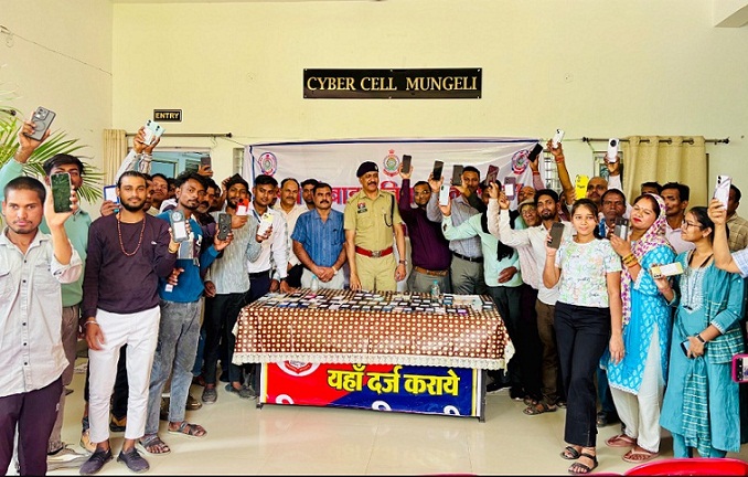 आज दिनांक 23 अप्रैल 2026 को साइबर सेल में आयोजित एक गरिमामय कार्यक्रम के दौरान, उप पुलिस अधीक्षक हरविन्दर सिंह के द्वारा मोबाइल धारकों को उनके फोन सुपुर्द किए। अपना खोया हुआ मोबाइल वापस पाकर आवेदकों/मोबाइलथारकों के चेहरे खिल उठे। कई नागरिकों ने बताया कि उन्हें उम्मीद नहीं थी कि उनका फोन वापस मिलेगा, उन्होंने मुंगेली पुलिस की कार्यप्रणाली की सराहना करते हुए एसएसपी भोजराम पटेल का हृदय से आभार व्यक्त किया।