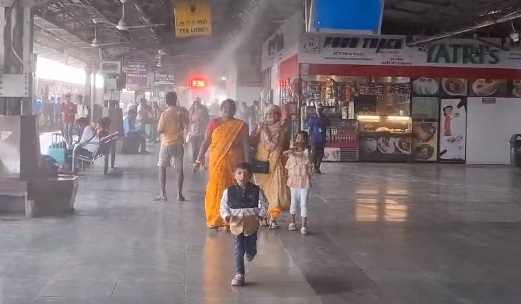 बिलासपुर रेलवे स्टेशन के प्लेटफॉर्म नंबर 1 पर अत्याधुनिक मिस्टिंग सिस्टम की शुरुआत की गई है। इस सिस्टम के जरिए प्लेटफॉर्म पर बारीक और ठंडी पानी की फुहारें छोड़ी जा रही हैं, जिससे आसपास का वातावरण ठंडा और सुहावना बन रहा है। इस नई व्यवस्था से ट्रेन का इंतजार कर रहे यात्रियों को गर्मी से काफी राहत मिल रही है। खासकर दोपहर के समय, जब तापमान अपने चरम पर होता है, यह मिस्टिंग सिस्टम यात्रियों के लिए बेहद उपयोगी साबित हो रहा है। रेलवे की इस पहल को यात्रियों द्वारा काफी सराहा जा रहा है।
