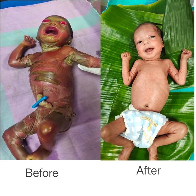 शिशु रोग विशेषज्ञ डॉ. नेहा चव्हाण के नेतृत्व में टीम ने 25 दिनों तक लगातार गहन उपचार, एंटीबायोटिक थेरेपी एवं विशेष नर्सिंग देखभाल प्रदान की। उपचार के दौरान शिशु की अत्यंत नाजुक और प्रभावित त्वचा की सुरक्षा के लिए विशेष सावधानियां बरती गईं। शिशु को बाहरी संक्रमण और घर्षण से बचाने हेतु पारंपरिक एवं सहायक उपाय के रूप में स्वच्छ एवं स्टरलाइज किए गए केले के पत्तों का उपयोग किया गया। इन पत्तों को बिस्तर के रूप में इस प्रकार बिछाया गया कि नवजात की त्वचा को मुलायम और सुरक्षित सतह मिले, जिससे शरीर पर रगड़ कम हो और संक्रमण का खतरा घटे। साथ ही नियमित रूप से पत्तों को बदलकर स्वच्छता बनाए रखी गई, जिससे बच्चे को एक संक्रमण-रहित वातावरण मिल सके।